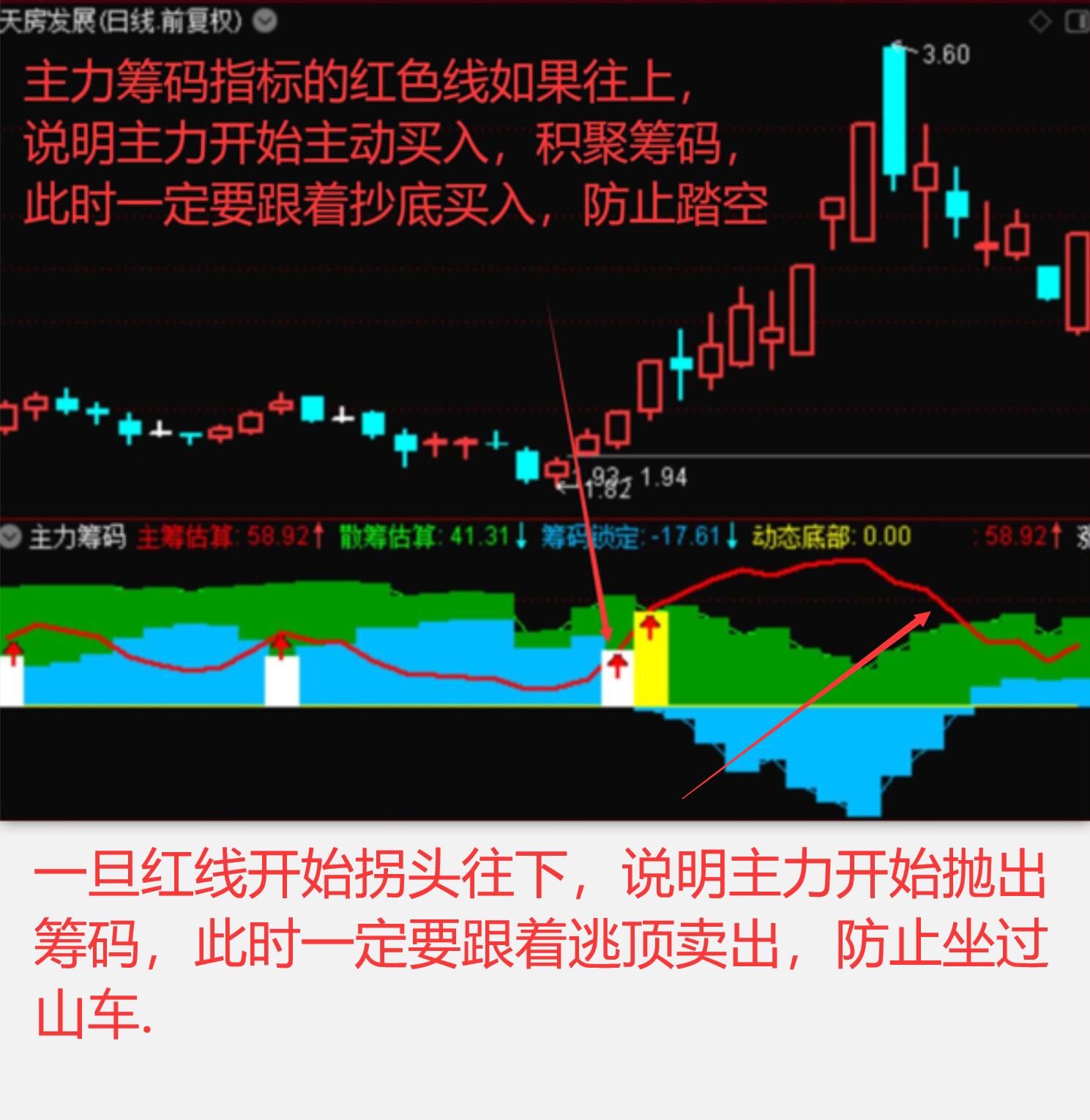 主力筹码指标的红色线如果往上,说明主力开始主动买入,积聚.