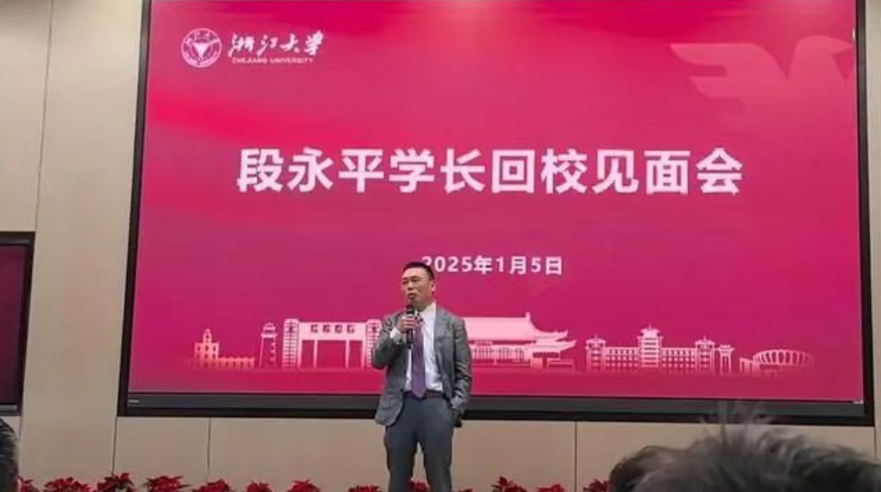 段学长好,然后非常荣幸今天有机会在浙大第二次见到您。刚才主持人也提到,在2016年的时候,我跟我的两位同学一起去硅谷跟您交流,然后学习。然后现在就是我们三位都已经博士毕业,我是留在浙大继续工作,然后另一位同学是在嘉兴的经济和信息化学工作,还有一位同学是在Apple公司工作。其实在我们,相当于其实是九年过去了,在这个过程中,我觉得您提到的要做对的事情,做感兴趣的事情,并且坚持把这件事情做好,对我们的影响是非常大的,也激励了我们做出我们各自的人生选择。所以在这边的话,我也代表我们这个团队,感谢一下您对我们师弟师妹的指导,谢谢。