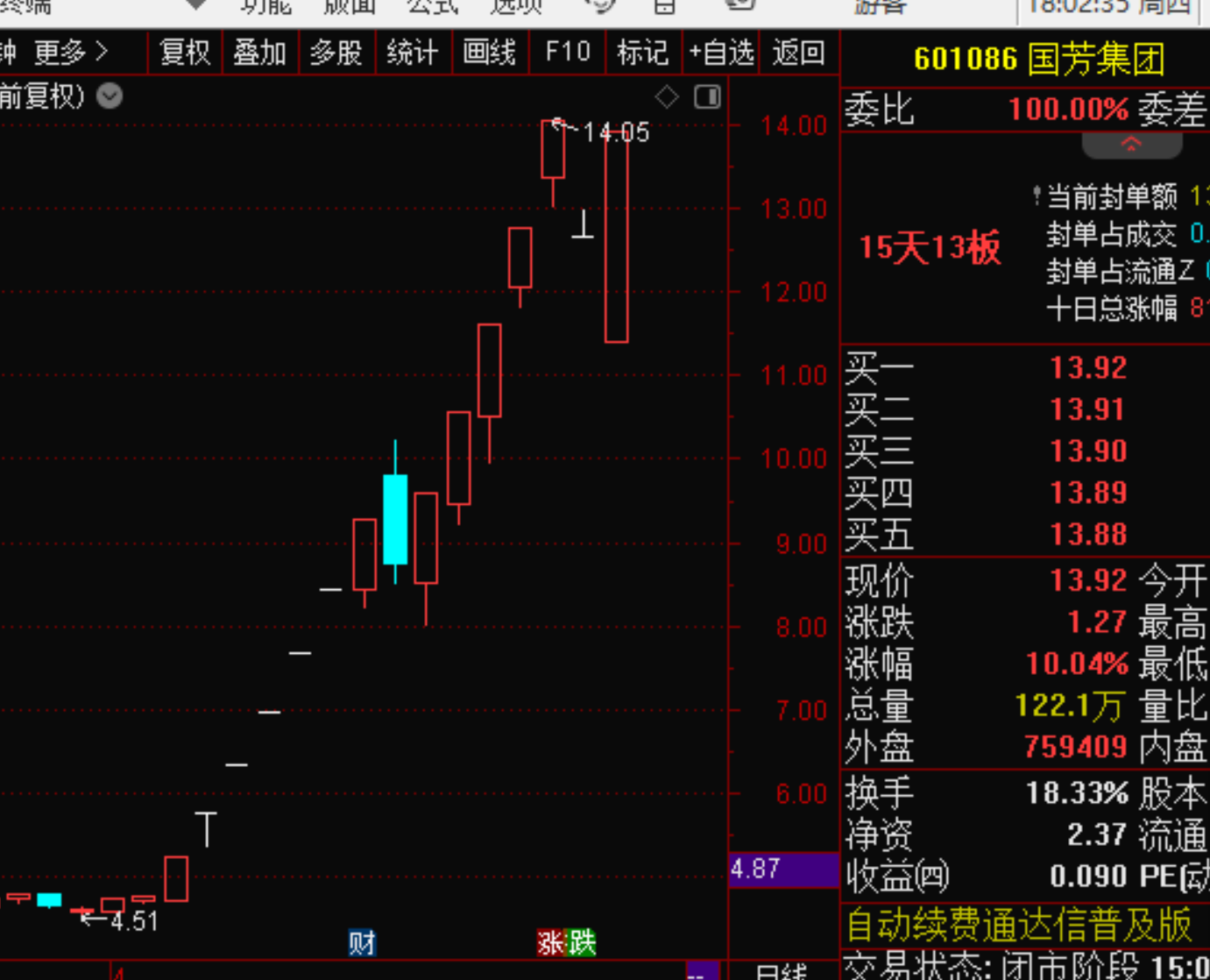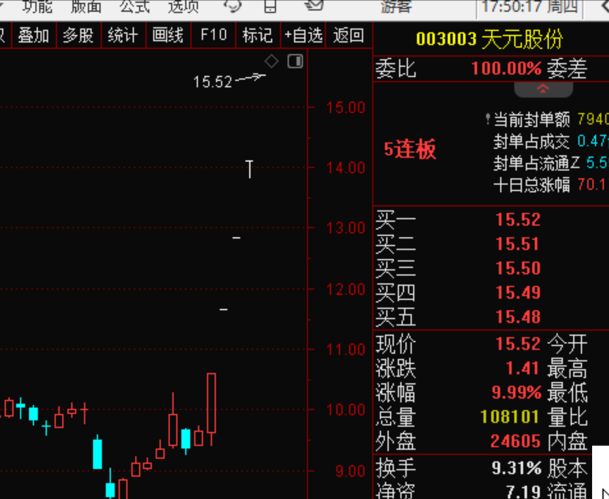 昨天判断天元股份会继续走一字,今天继续五连板.