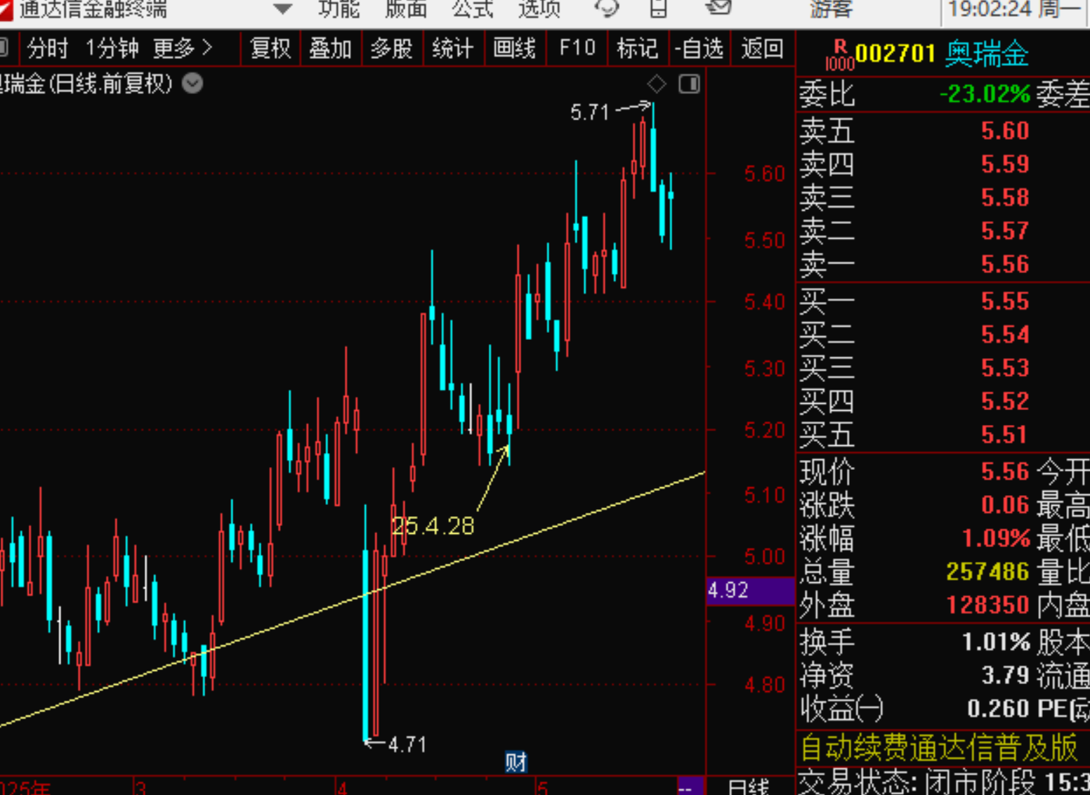 4月28号看好的奥瑞金,我认为再跌一跌最好,结果保守了,第二天开始开始继续上涨,截止目前走了3波了.