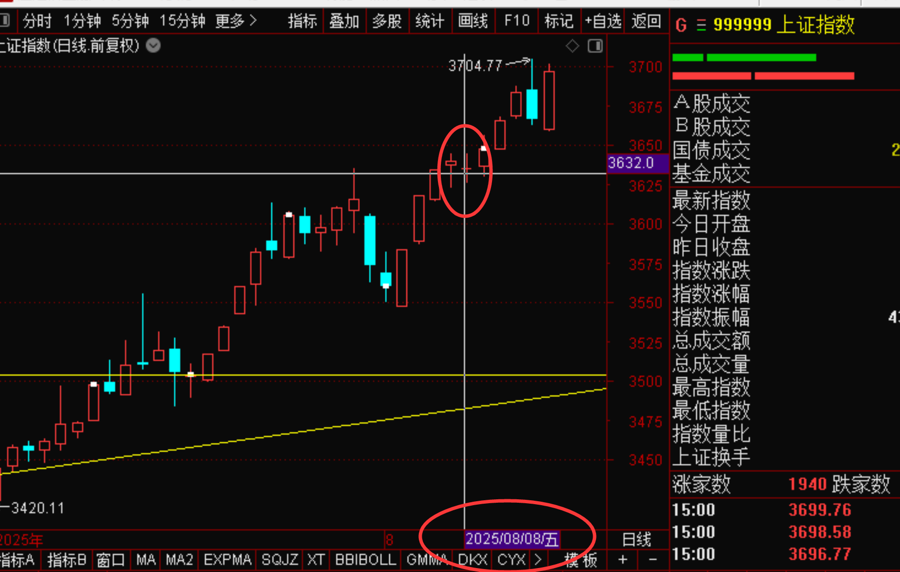 在8月号,大盘滞涨+收高位十字星时,我坚定告诉大家趋势上不要怀疑,各位学员们做好中线大波段即可.