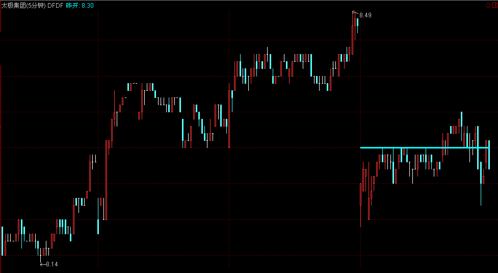 此指标用于分钟周期线,同时在昨开盘价的位置上画一根线。