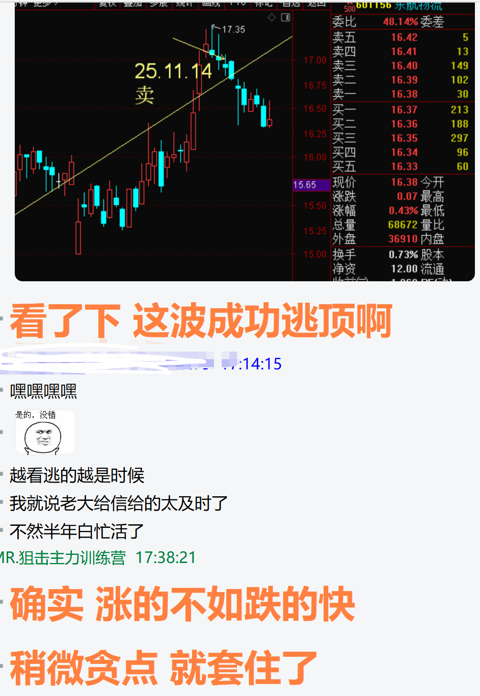 我就是通过识别k线形态+经验来判断顶部的,给大家分享点技术经验,想系统学习的可以参加我的K线技术训练营,中线训练营,短线训练营等.