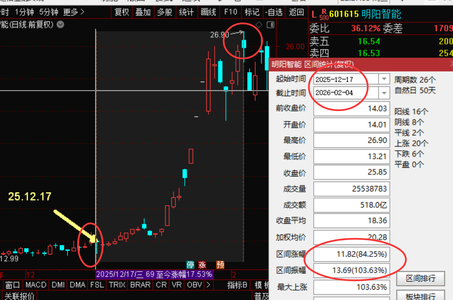 该股从25年12月17号选出,到26年2月4号最高点,2个月暴涨了80多个点.