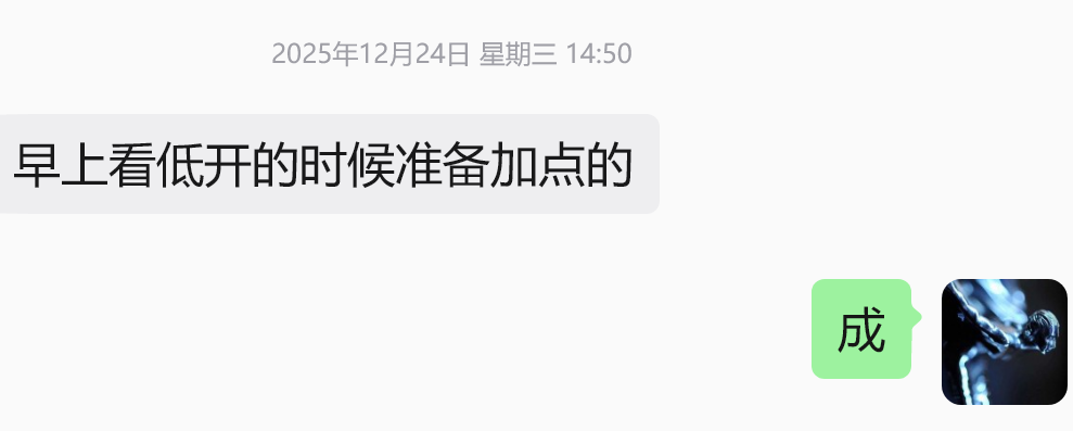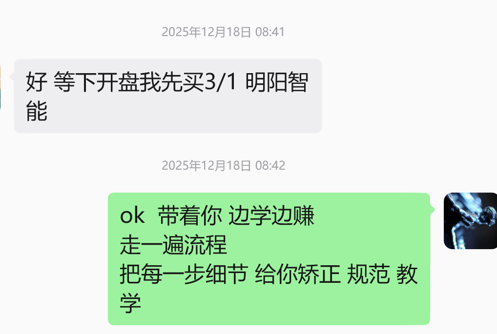 25年12月18号,开盘买入前我俩开始交流沟通.
