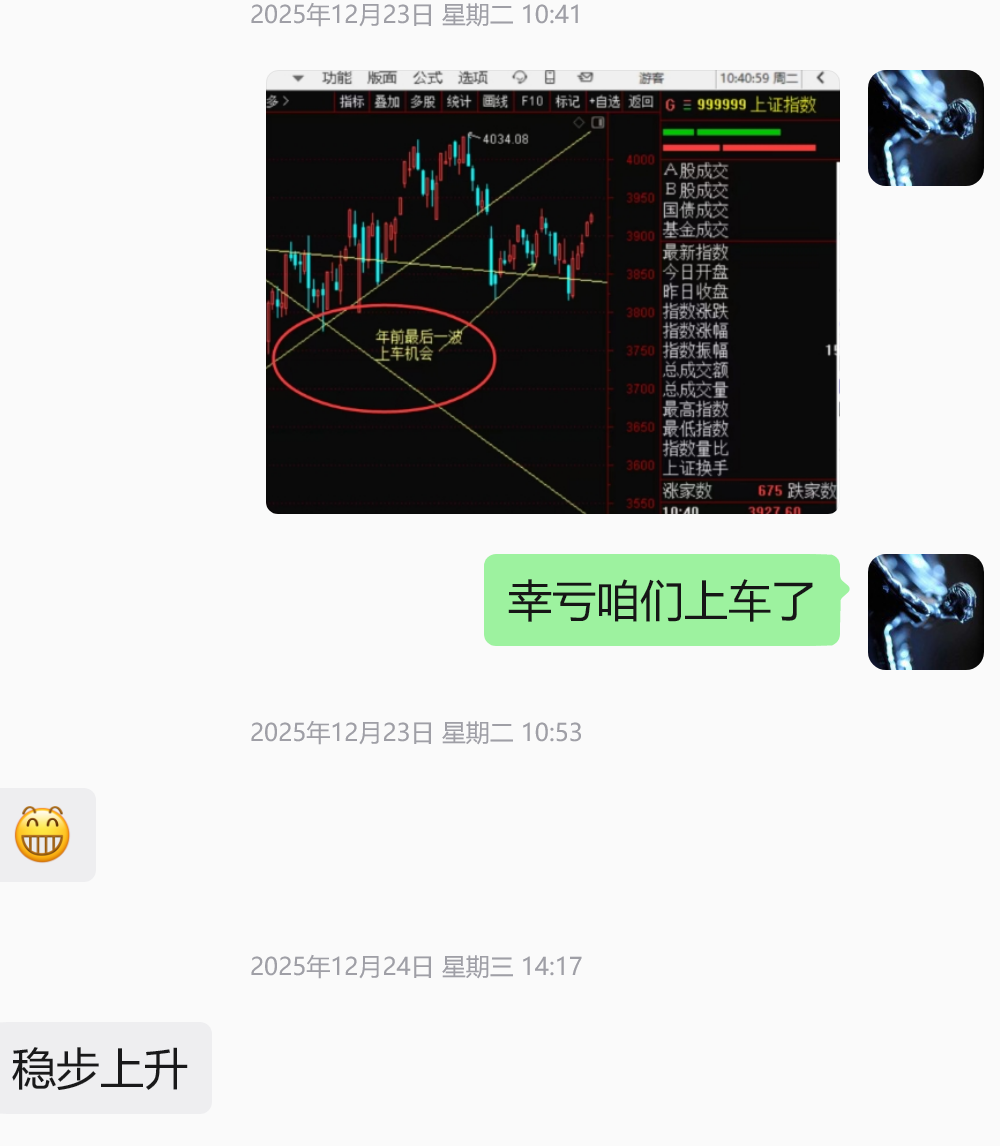25年12月23号,我看到大盘开始起飞,恭喜她成功上车了.