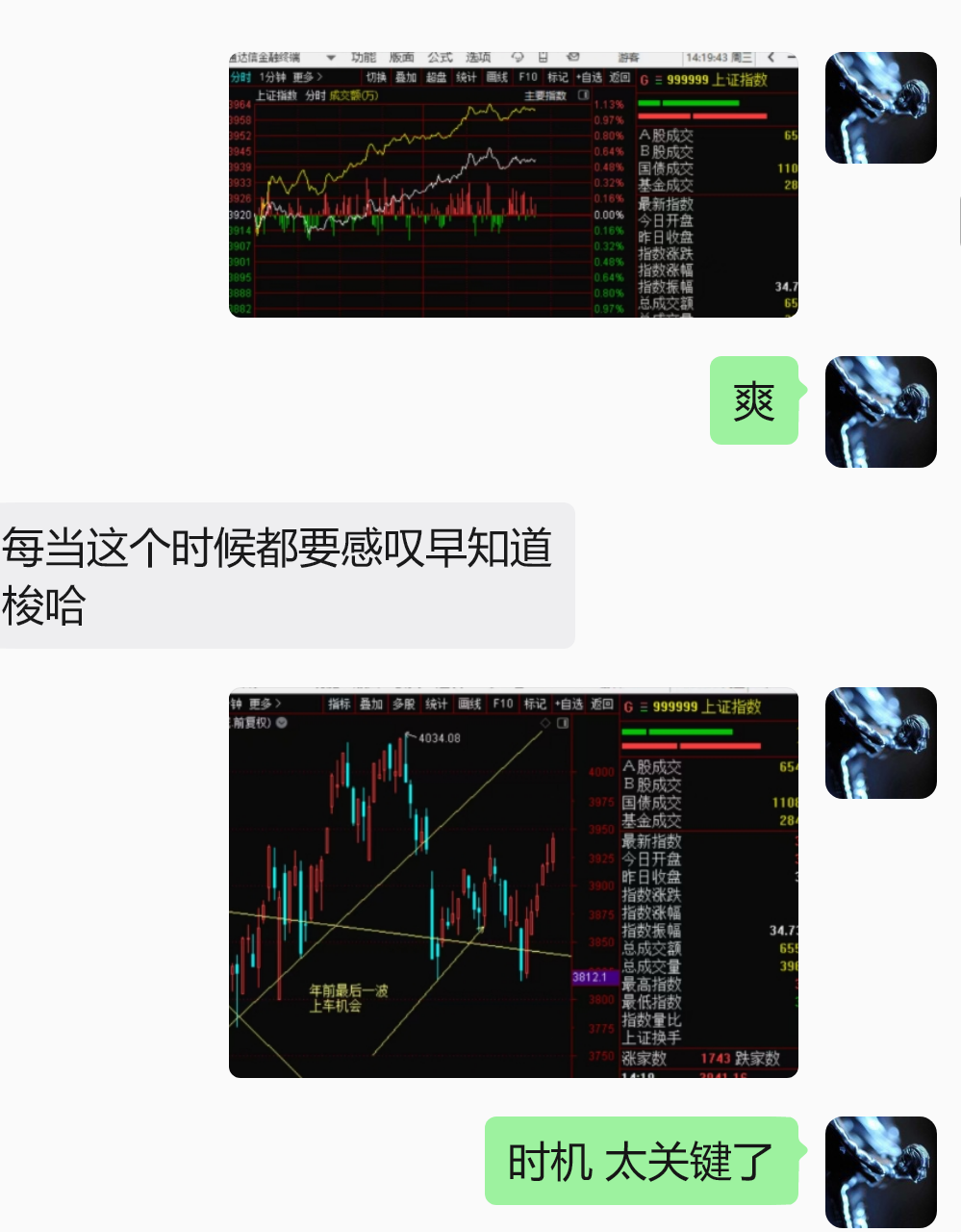 我给她说时机太关键了, 我的理念是一定要会选势,将时机选择作为投资的重要依据.