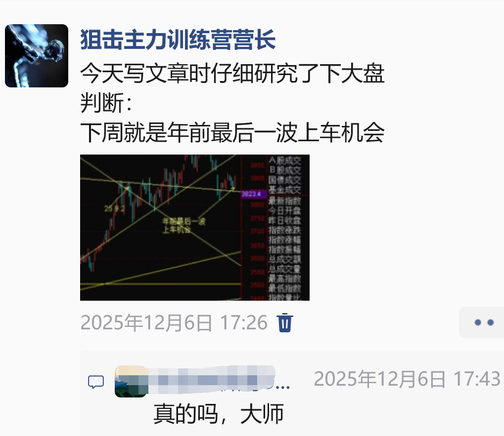 因为我在12月6号发出朋友圈就已经公开提示大家,下周就是年前最后一波上车机会.