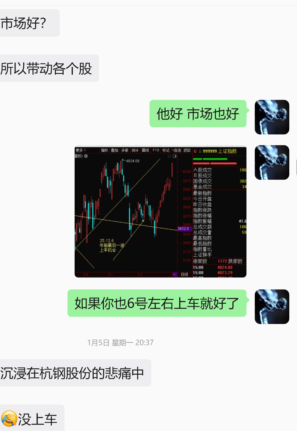 她在12月6号虽然看到我朋友圈发的目前是年轻最后一波上车机会,但是她的杭钢股份一直被套,影响了心态.