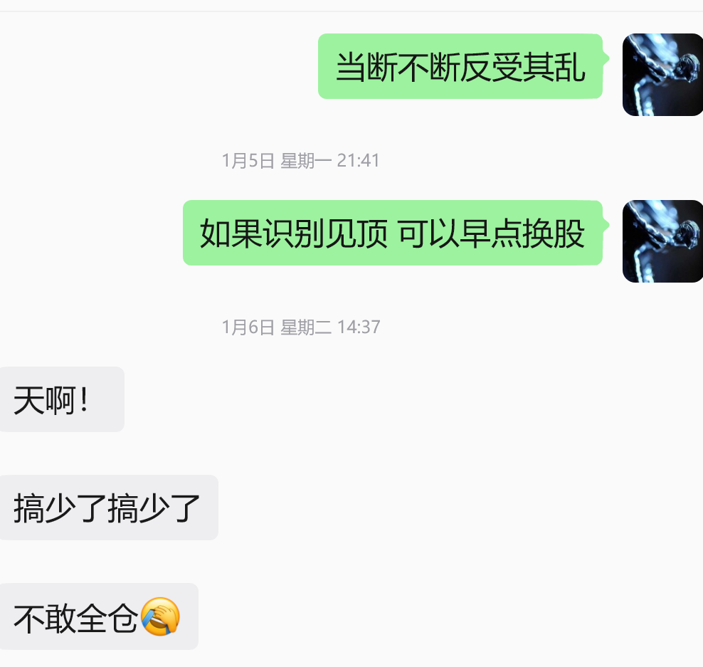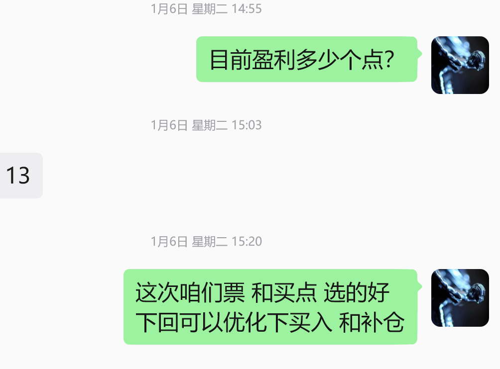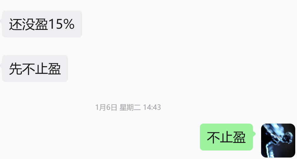 26年1月6号,我俩的观点都是先不要止盈,目前才盈利十几个点.