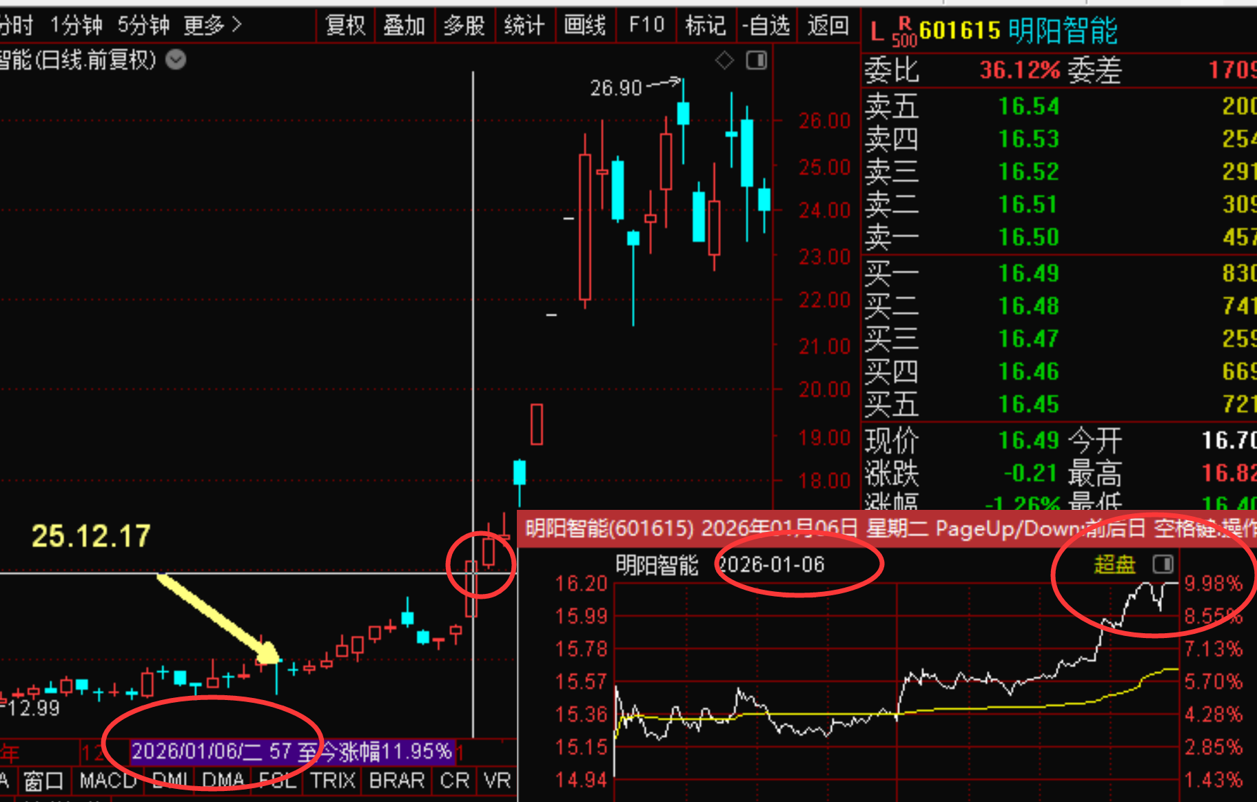 26年1月5号我继续让她补仓.我判断明阳智能要起飞.
