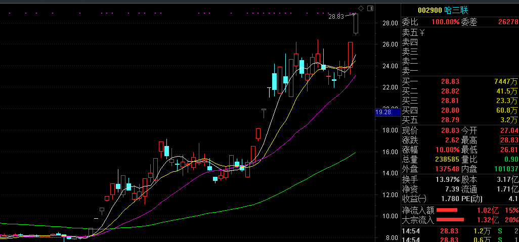 福建金森,这一波核心,但是他的启动也是因为华银电力的启动之后才启动,圈内华银电力,这一波,已经拿了翻倍的收益,一只票死捂一个月4月29日介入一直死捂,继续坚定看好。没有大格局,拿不住妖股。