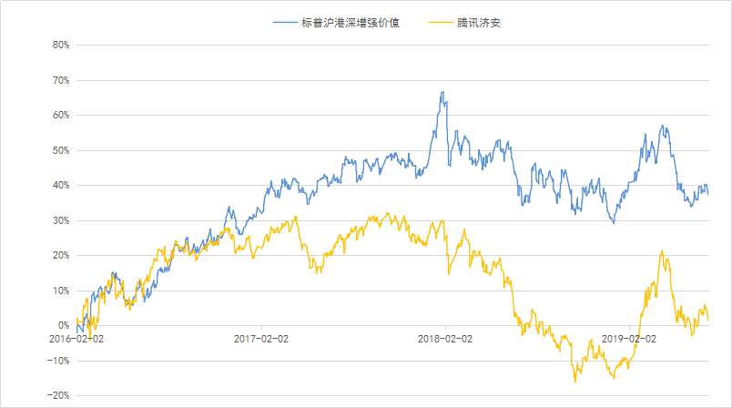 市面上能买到的纯粹的价值策略指数基金,除了标普价值之外,还有300价值和中证腾讯济安100指数,另外还有神奇公司和国信价值,不过他们都加入了质量因子,用标普价值跟他们去对比显然是不公平的。