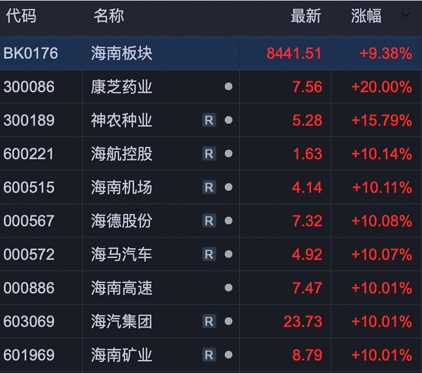 7月24日的盘面热闹得像过年。海南板块指数飙涨9%,中国中免半日成交46亿,水电龙头中国电建4连板创两年新高。媒体铺天盖地报道"封关政策释放消费潜力",券商研报集体高唱"长期投资机会"。