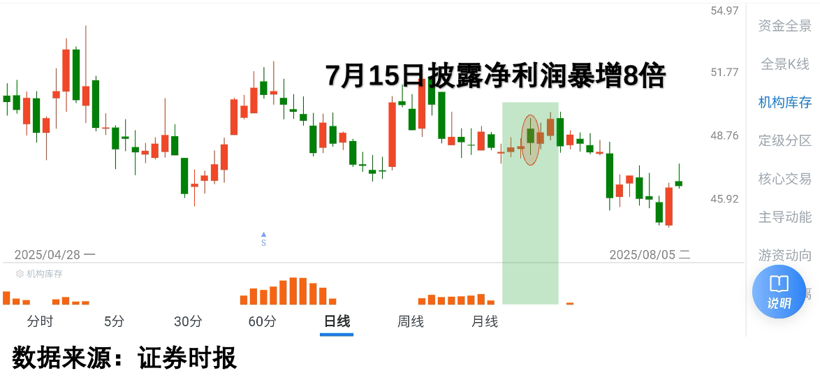 7月14日盘后,纳瑞雷达公布中报净利润暴增8倍。这本该是重大利好,但股价却逆势下跌近10%。查看交易数据发现:利好公布前后虽然股价反弹,但机构资金参与度为零。