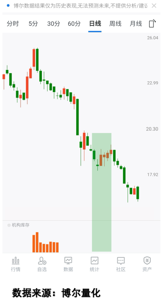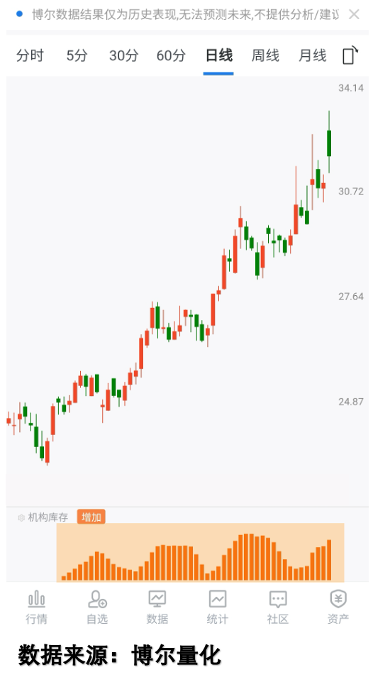 如果「机构库存」数据越活跃,那就意味着参与交易的机构资金越多,机构资金参与的时间也越长。