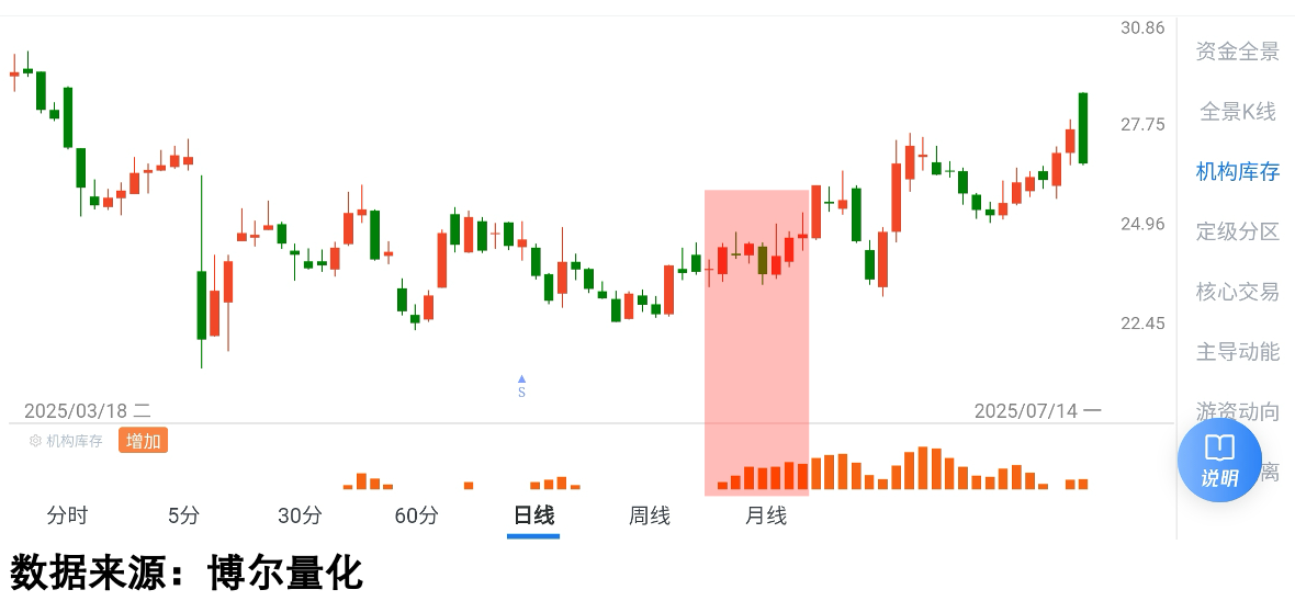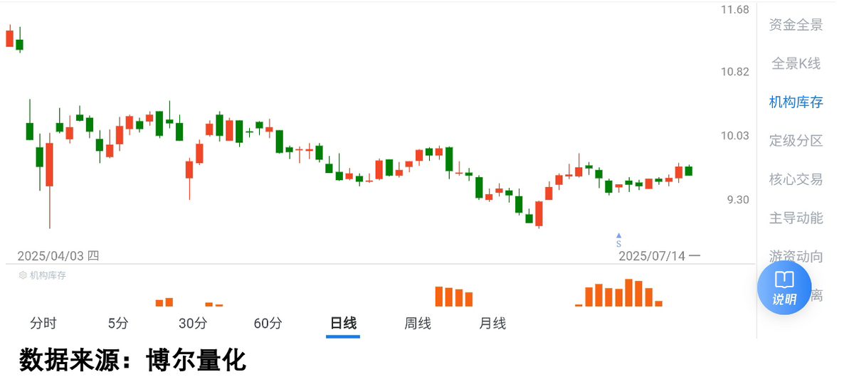 如果「机构库存」数据越活跃,那就意味着参与交易的机构资金越多,机构资金参与的时间也越长。