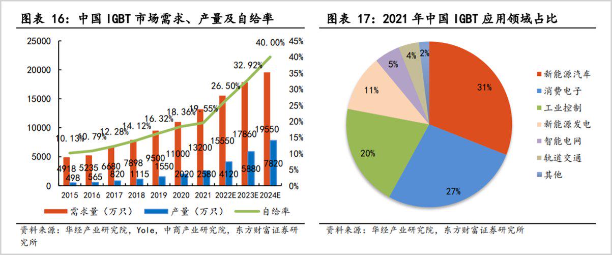 从市场规模来看,国内IGBT行业正处在快速发展阶段。据东方财富研究,国内市场规模到2025年将增长至522亿,复合增速达22%。