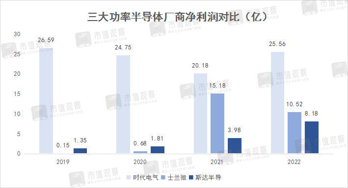 而时代电气的功率半导体器件业务营收占比仅10.18%,近年来其业务增长较快,但公司整体净利润规模仍维持在25亿左右水平。