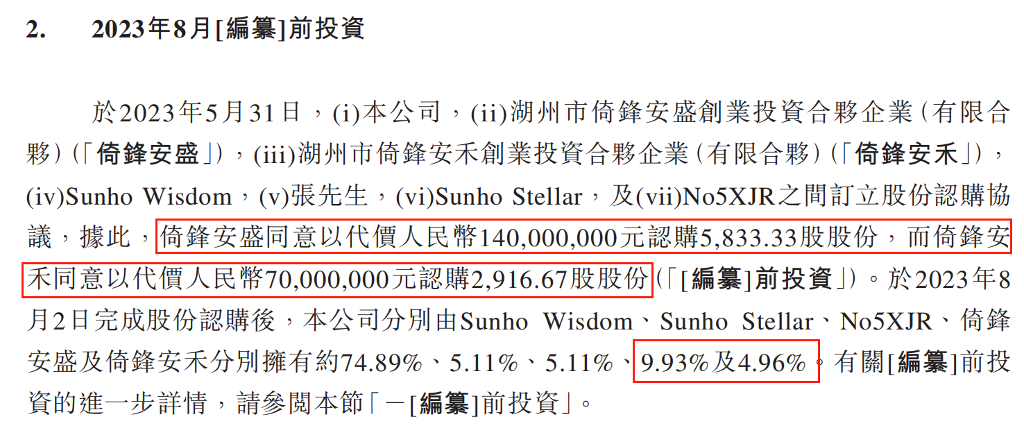 2023年5月31日,盛禾生物与倚锋安盛以及倚锋安禾之间签署股份认购协议,倚锋安盛以1.4亿元,倚锋安禾以7000万元认购盛禾生物的股权,于8月2日正式完成交割。这两家私募公司合计出资2.1亿元,持有盛禾生物14.89%的股权。
