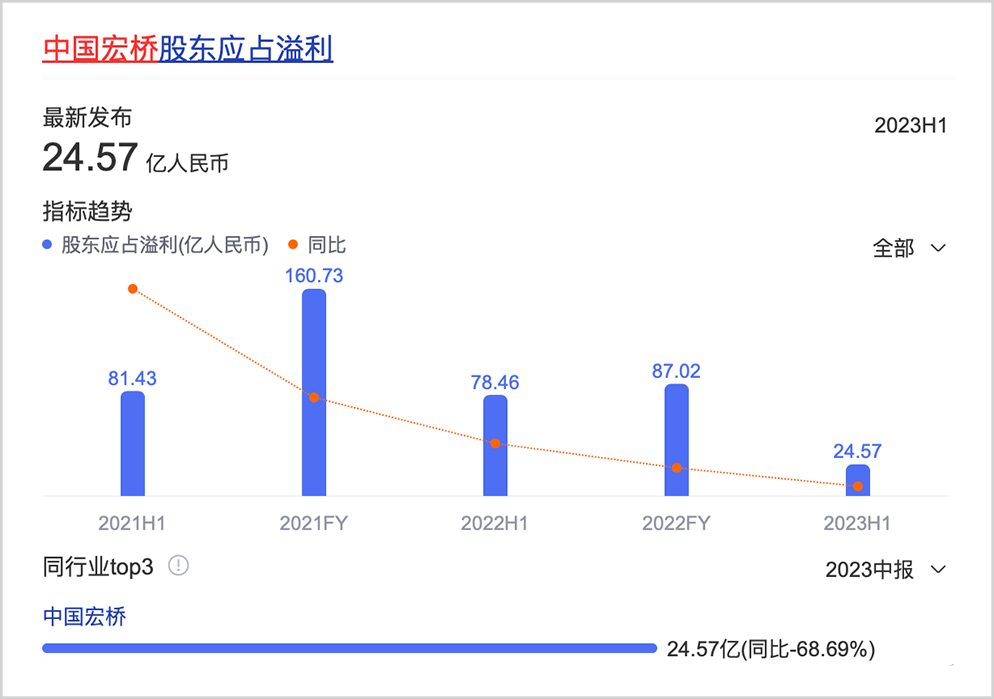 贵为中国最大的棉纺织生产商,魏桥纺织也难以独善其身,2022年公司归母净利润亏了15.58亿元,2023年上半年又亏了5.04亿元。