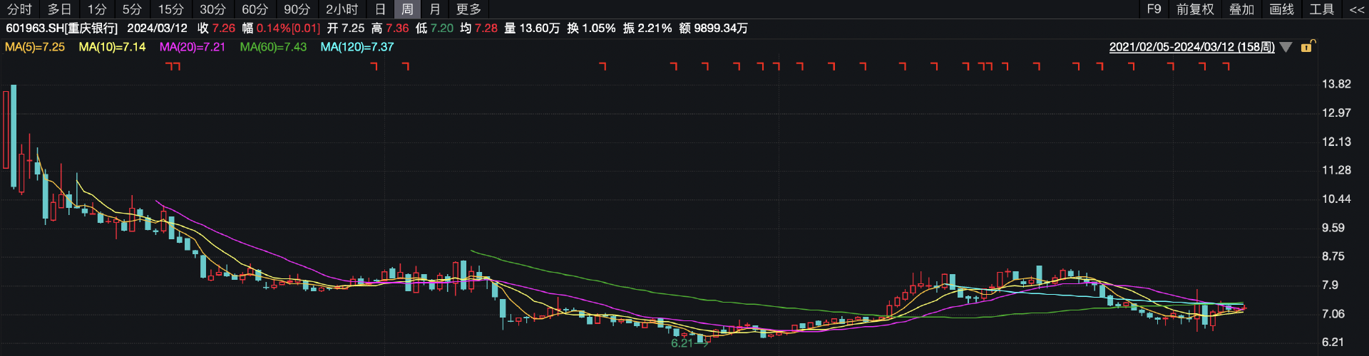 业绩疲软,重庆银行的股价也长期低迷,自2021年A股上市创出14.64元/股的高点后,目前股价已经接近腰斩,市值也蒸发了200多亿。尽管公司多次抛出增持计划,但并没有起到多大成效。