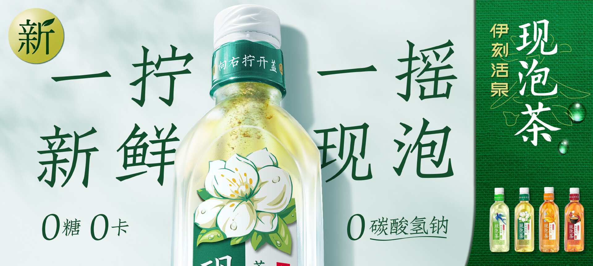 如此通感的设计,不但融合了茶道韵味,更将伊刻活泉“新鲜现泡”的新鲜口感、清新香气,一并传递。