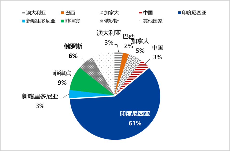 印尼的镍矿资源以红土型镍矿为主,矿石品位较高,近一半的红土镍矿资源品位高于1.7%,是世界上镍储量最丰富的国家。