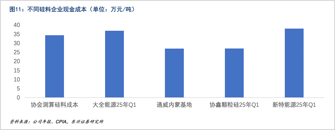 成本层面,硅料企业现金成本差距明显,头部企业成本远低于三线企业,在供给优化下,硅料环节率先实现产能出清更具优势。
