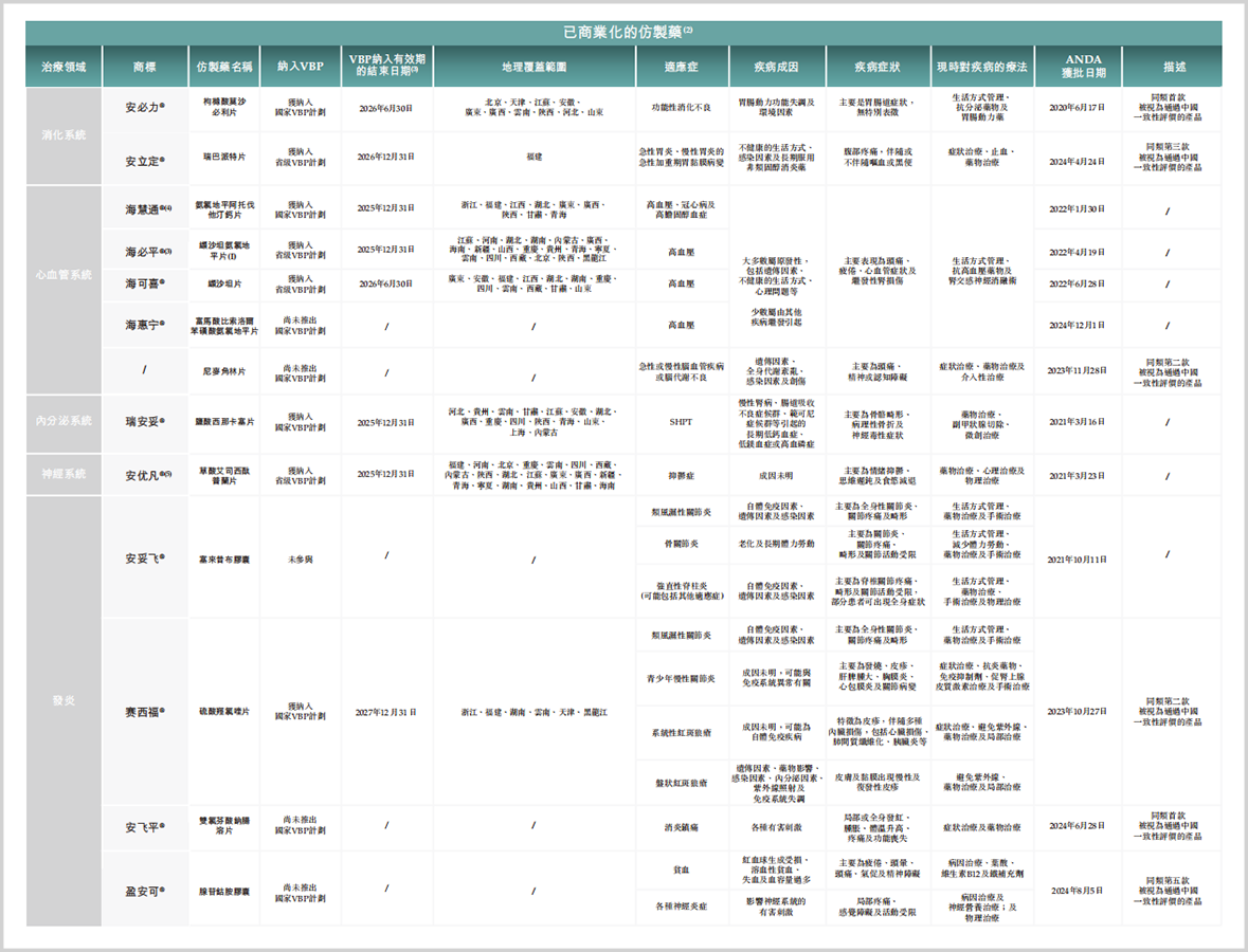 ▲已商业化仿制药情况,来源:招股书