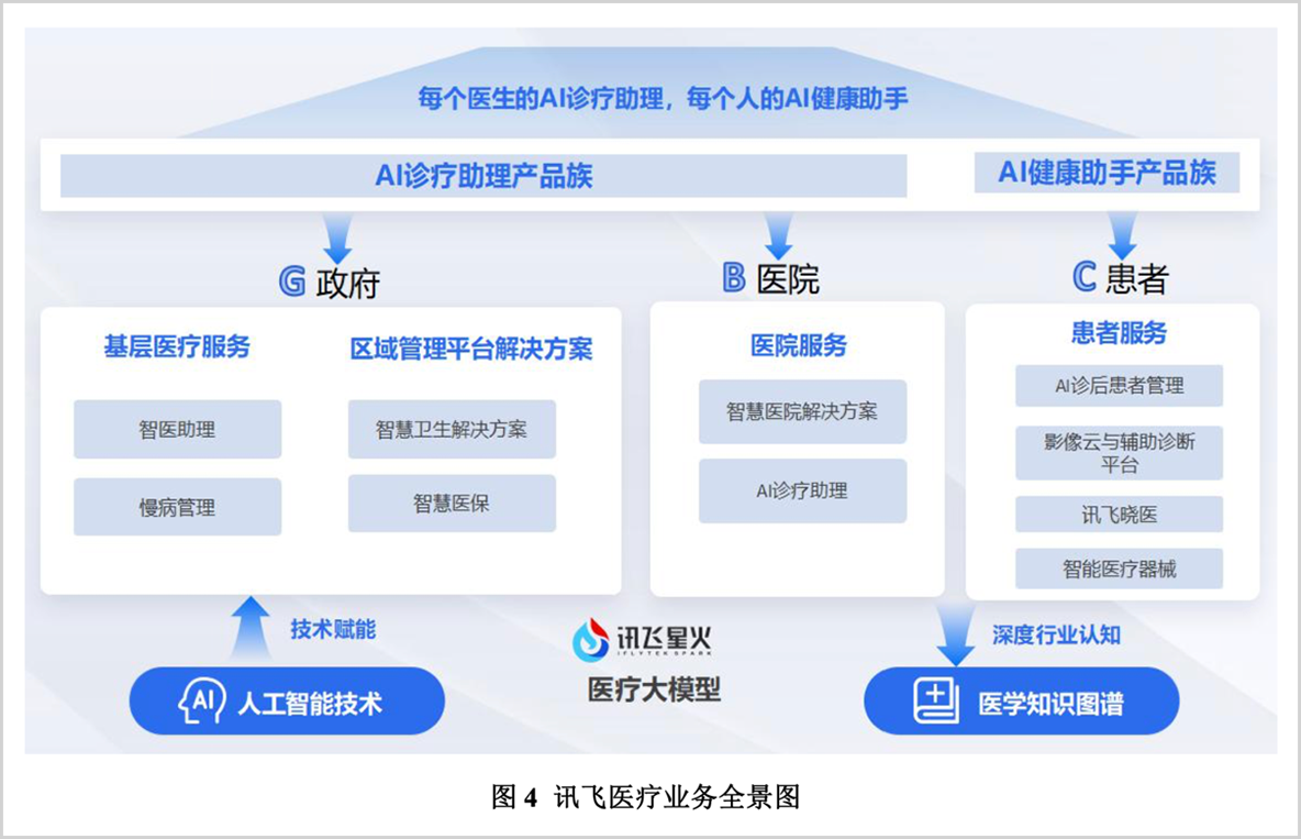 在医疗行业,公司拥有针对GBC(政府、医院、患者)客户的AI诊疗助理产品族和AI健康助手产品族。