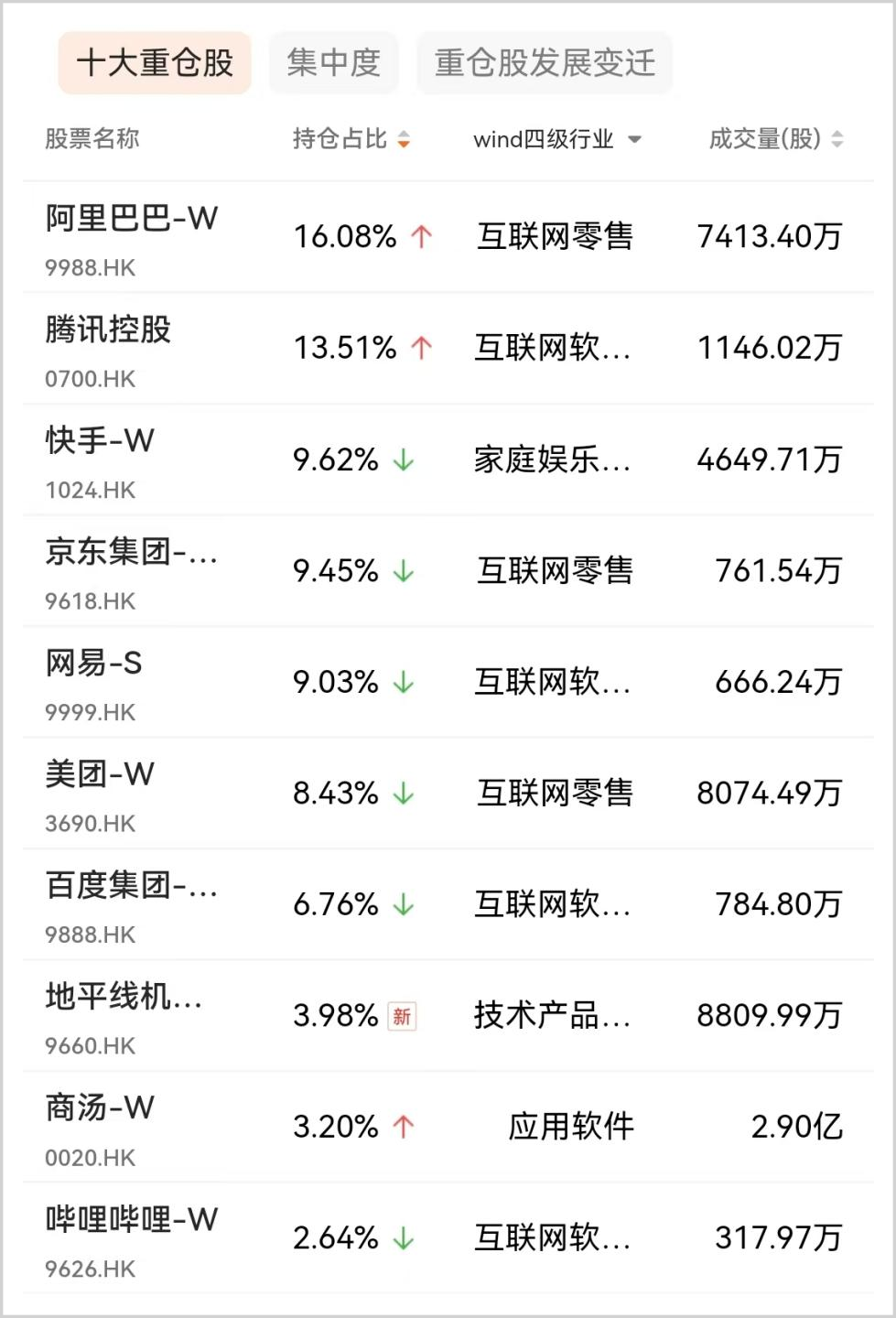 ▲恒生互联网ETF(513330)前十大重仓股,来源:“红色火箭”小程序