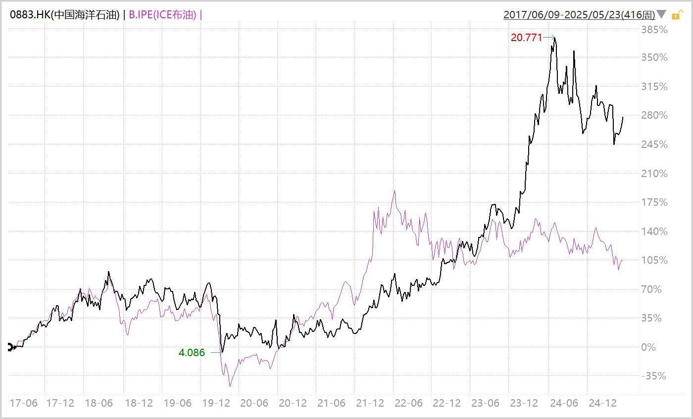▲中国海油 VS ICE布油走势图,来源:Wind