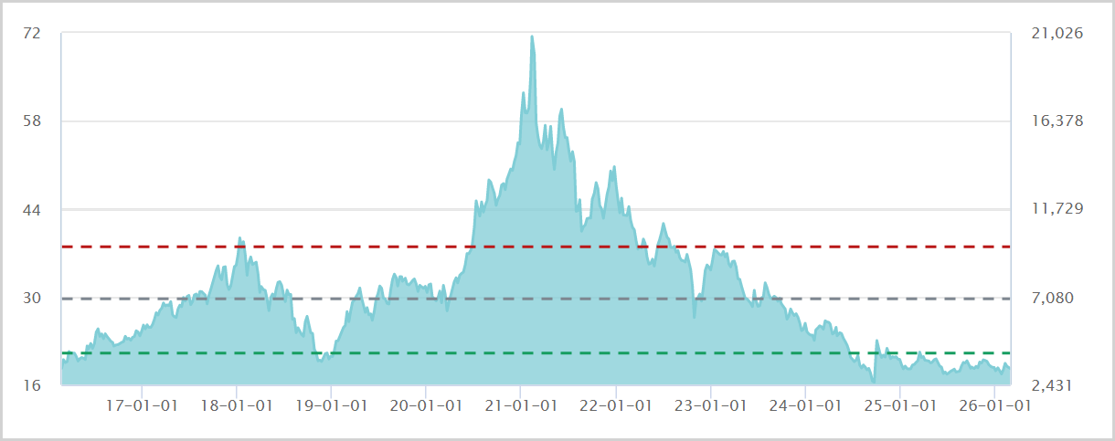 ▲中证白酒PE走势图,来源:Wind