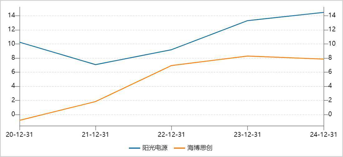 ▲阳光电源VS海博思创净利率走势图,来源:Wind