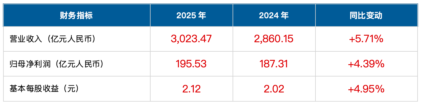 · 现金流与股东回报:2025年经营活动现金流净额达260.03亿元,为归母净利润的1.33倍,现金质量扎实。公司2025年度现金分红比例提升至55%,较2024年提高7个百分点。