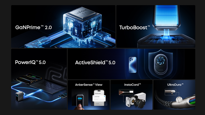 据介绍,两款产品均首次搭载了安克自研的“安克智能盾”系统。该系统实现电池信息独立、透明、可追溯,确保其来源可靠、品质纯净,从源头杜绝二手电池隐患。未来,“安克智能盾”将进一步向安全智能化迭代,实时监测电压、电流、温度,智能识别不同设备并动态调节充电功率,提供全场景、全时段的安全守护。