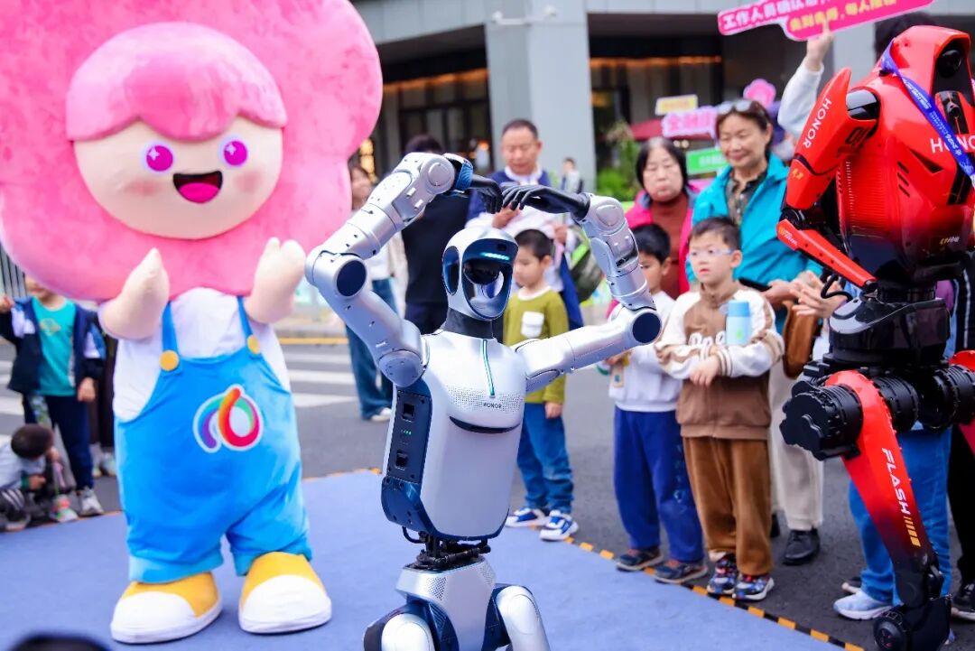 在现场,国家级专精特新企业乐聚机器人带来的行走机器人正在进行花式炫技,它们灵活的舞步和障碍跨越能力引得围观市民阵阵喝彩;美食治愈机器人化身“星级大厨”,机械臂精准地进行智能烹饪与饮品调制,让市民在品尝中感受“代码到餐桌”的科技转化;亲子陪伴机器人则以其萌趣的外表和高智商互动,成为孩子们争相合影的“赛博玩伴”。此外,现场还设立了AI硬件实验室,智能穿戴设备、脑机接口体验区等前沿科技让公众零距离触碰AI时代的脉动。