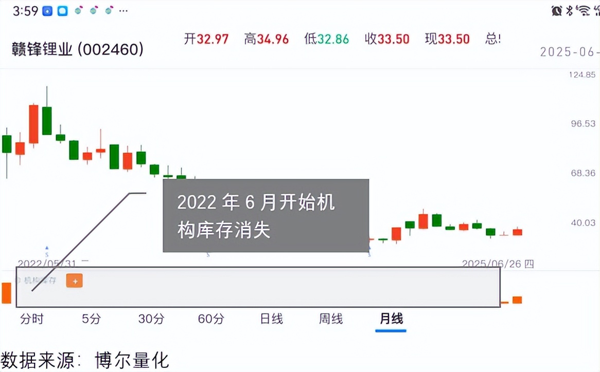 这种周期性波动在房地产行业也同样明显。但有趣的是,A股市场往往会提前于实体经济做出反应。就拿锂矿龙头赣锋锂业来说,碳酸锂价格在2022年12月才见顶,但「机构库存」数据早在6月就开始消失了。