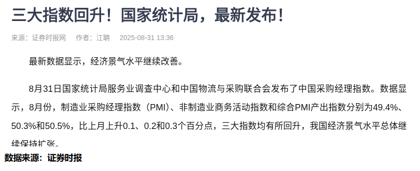 最近这经济数据可真是热闹。8月PMI三大指数集体回升,制造业、非制造业都在往上窜,连专家都说"稳中向好"。可你打开账户一看,怎么还是绿油油一片?这事儿有意思了。