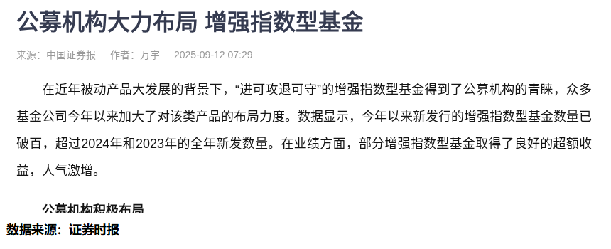 最近朋友圈里都在讨论增强指数型基金的火爆表现。看着那些亮眼的超额收益数据,我不禁想起去年这个时候,身边不少朋友还在为"要不要买指数基金"而犹豫不决。如今,公募机构大举布局这类产品,市场关注度飙升,这背后究竟隐藏着怎样的市场变化?作为一个在股市摸爬滚打多年的老股民,我深知市场永远比表面看起来要复杂得多。看上去好像买基金更划算,但实际因为指数基金本身就是一揽子股票的体现,所以入选的成分股表现只会越来越好,这才是给小散的机会!