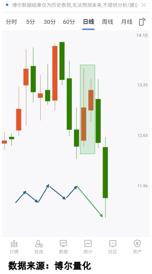 看看这只股票的走势。连续两次大幅震荡后股价神奇翻盘,如果仅凭走势判断,谁能预测到这个结果?同样的走势形态放在另一只股票上却完全相反: