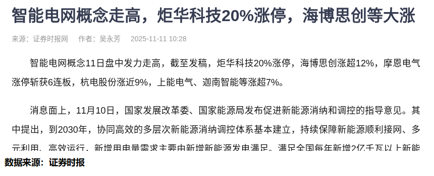 11月11日那天,我正盯着量化系统里的数据流,突然发现智能电网板块集体异动。炬华科技20%涨停的K线图在屏幕上格外醒目,海博思创12%的涨幅曲线像心电图般剧烈跳动。这让我想起十年前刚入行时,也是这样盯着屏幕,却完全看不懂这些数字背后的玄机。