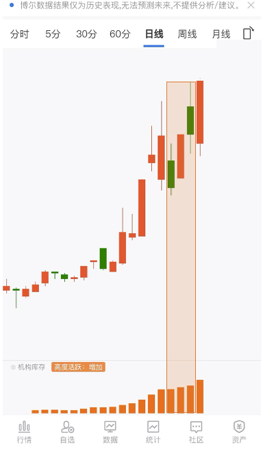 我之前认识个朋友,前阵子踩中了热门赛道的红利,手里的股票短短半个月就涨了不少,后来出现两次小幅调整,之前每次调整完第二天都能拉回去,他就想当然觉得这次也一样,不仅没减仓反而还加了点,结果没两天就回吐了之前大半的盈利,他后来跟我吐槽说运气太差,其实根本不是运气的问题,就是只看表面走势,没摸到背后的真实交易情况。我们做投资从来不是赌运气,所有的决策都要有依据,而最靠谱的依据就是客观的交易行为数据,我用了十多年的量化大数据系统里,有个核心的「机构库存」数据,就是专门统计机构大资金的参与活跃程度的,橙色的柱体越高,说明机构参与的积极性越强。