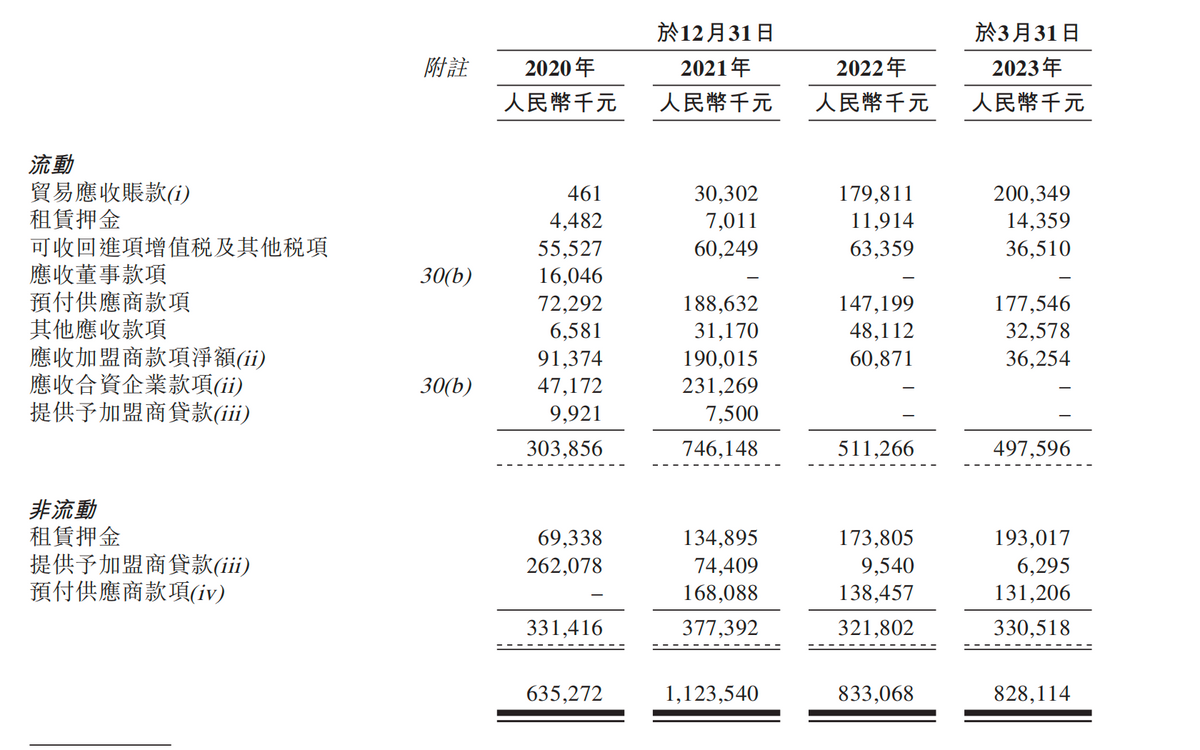 过去门店速度的快速增长,也可能与KK集团的策略有关,此前发布的招股书显示,2018年、2019年及2020年12月31日以及2021年6月30日,KK集团提供给加盟商的贷款分别为0元、0.35亿元、2.72亿元、2.58亿元。