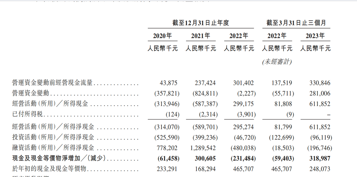 事实上 2019年至2021年,KK经营活动所得净现金均为负值,2022年才有所转正。