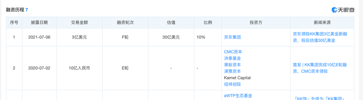 KK集团显然为市场带来了一个颇具想象力的零售故事。天眼查APP融资历程显示,冲刺港股钱,KK集团已经走到了F轮融资。据证券时报统计,KK集团通过13轮融资一共融得约32亿元。