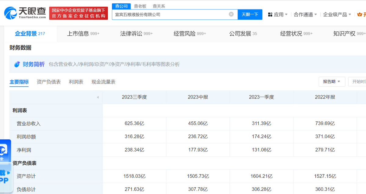 毕竟天眼查APP显示,以五粮浓香酒(五粮春、尖庄、五粮醇、五粮特曲)为代表的“其他酒类”,在2023年上半年也实现了67.13亿营收,占同期总营收的14.75%。