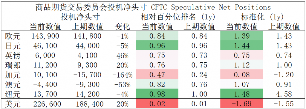 CFTC资金流数据显示,美元空头处于极值,因此,预计短期随着资金流入并支持其回涨,另外,日元多头也处于极值。