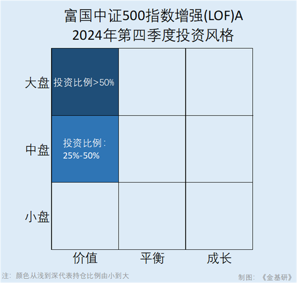 举个例子来看,某平台数据显示,富国中证500指数增强(LOF)A的投资风格主要为大盘价值风格的股票,投资比例大于50%,其次是中盘价值风格的股票,投资比例在25%至50%之间。